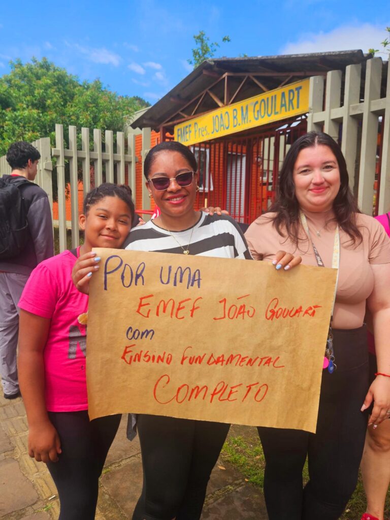 A manhã deste sábado (1º) foi marcada por mais um ato de resistência em defesa da educação pública. A Atempa e o Sindicato dos Municipários de Porto Alegre (Simpa) estiveram ao lado da comunidade escolar da EMEF João Goulart, em uma caminhada de protesto contra o fechamento das turmas de 6º ano — medida prevista no projeto de municipalização imposto pelos governos Sebastião Melo (MDB) e Eduardo Leite (PSDB), conduzido pelo secretário de Educação Leonardo Pascoal.