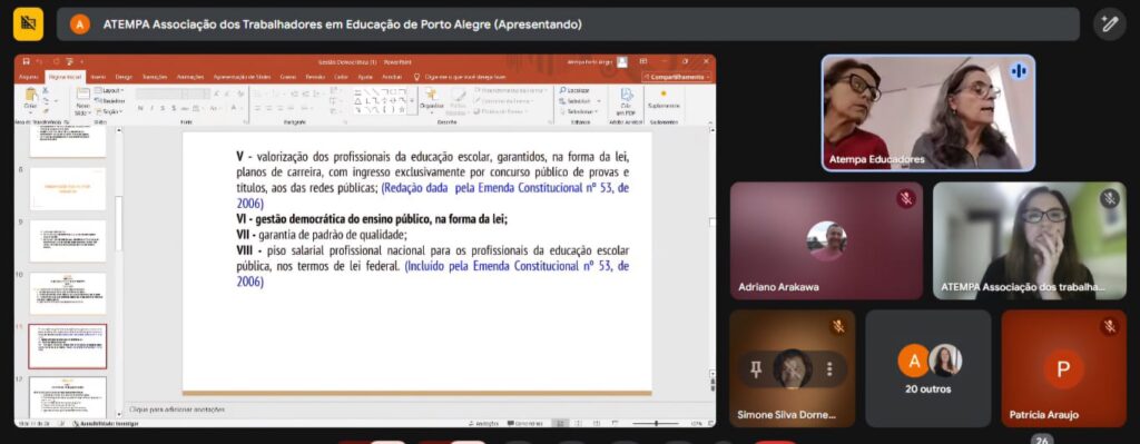 Com o objetivo de fortalecer a defesa da gestão democrática e da autonomia dos conselhos escolares, diante da postura autoritária e dos ataques do governo, a direção da Atempa realizou a formação A Gestão Democrática da (e na) educação e da (e na) escola.