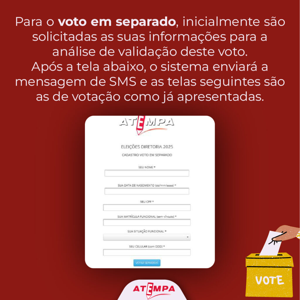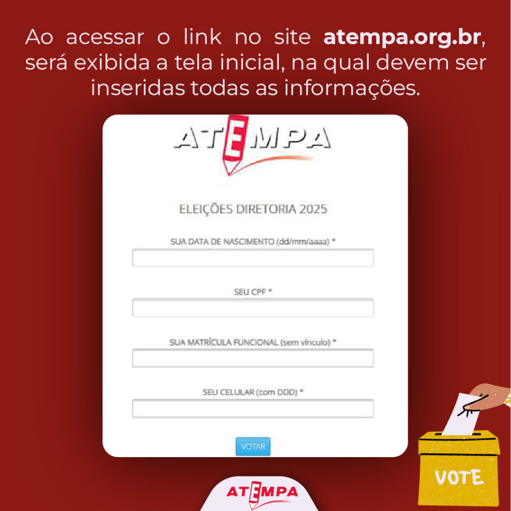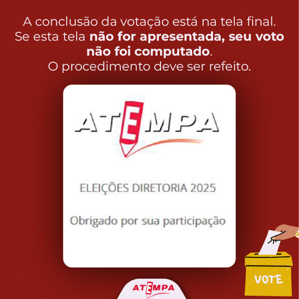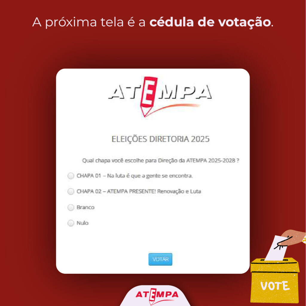 Para facilitar o acesso ao sistema de votação, a Atempa preparou um tutorial com o passo a passo de como votar, disponível nas redes sociais e canais de comunicação da entidade. A orientação é simples e objetiva, assegurando que cada sócia e sócio possa exercer seu direito ao voto de forma tranquila.